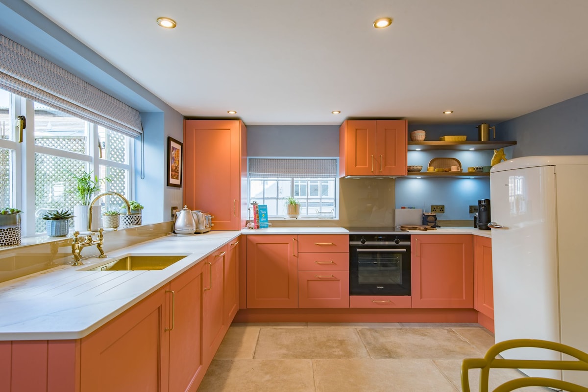Kuća Lavender je predivno obnovljena starinska seoska kuća u srcu Ihurst Grina, s pogledom na čuveni dvorac Bodiam, jednu od najfotografisanijih znamenitosti u Istočnom Saseksu. Neobičan šarm seoske kuće u kombinaciji sa modernom udobnošću u svakom pogledu: svijetle, prozračne sobe, istaknuti autentični detalji i sve što vam je potrebno za zaista opuštajući boravak. Dva prostrana vanjska prostora maksimalno iskorišćavaju sunce, a pab White Dog je bukvalno 100 metara od ulaza – ovaj objekat je jedinstven!