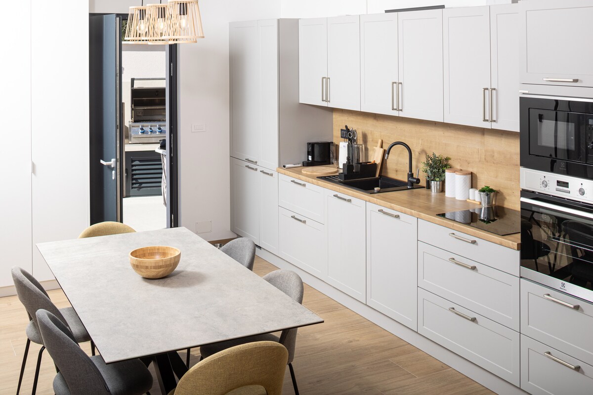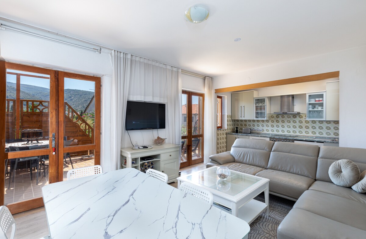 Potpuno nov moderan i moderan stan koji se nalazi u centru, u blizini plaže i sa prelepim pogledom. Ovaj prostrani (90 m2) moderan stan koji se sastoji od dve spavaće sobe, dva kupatila, ogromne, otvorene kuhinje sa dnevnim boravkom, a terasa je kompletno opremljena za veoma udoban boravak. Samo nekoliko minuta hoda do glavnog trga, ali i dalje u mirnom komšiluku.