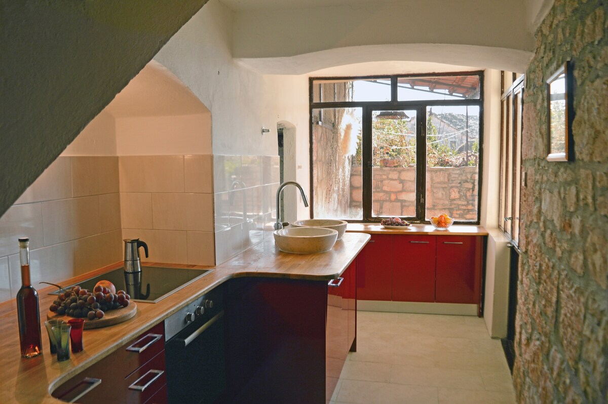 Kamena lepota iz 1467. godine, spomenik kulture koji se nalazi u istorijskom jezgru Pučišća - jednog od 15 najlepših malih gradova u Evropi. Restaurirani dvorac daće vam trenutke mira i tišine jer je prednja strana dvorca okrenuta prema moru i gradu, a iza njega se nalazi bašta, dvorište i tri terase za trenutke odmora. Stan na prvom spratu se sastoji od trpezarije i dnevne sobe, kuhinje, kupatila i spavaće sobe sa pogledom na baštu.