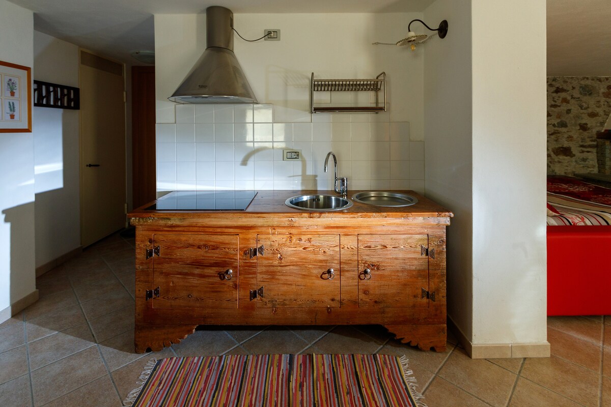 Veoma prostran, rustičan, potpuno nov i nezavisan prostor; ima privatni ulaz, parking mesto i mogućnost samostalnog dolaska. Nalazi se u mestu Stazzona di Villa di Tirano (3000 stanovnika), udaljenom 5 minuta vožnje od Tirana, odakle polazi Crveni voz za S. Moric. Na 15 i 35 minuta vožnje udaljenosti nalaze se skijališta Aprica i Bormio za ljubitelje skijanja, dok ljubitelji planina, leti, mogu da pešače stazama Valteline