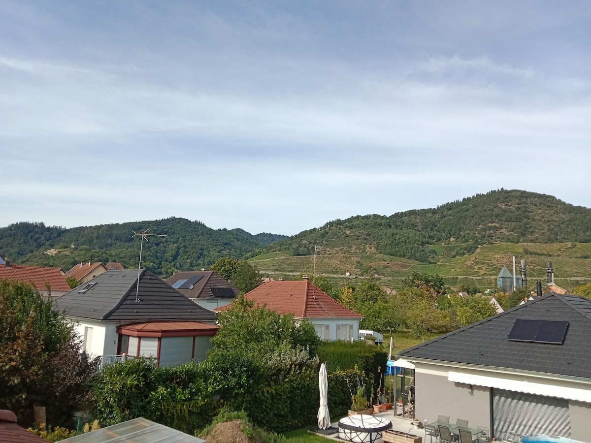 (Espace non-fumeur )Un bel appartement situé dans une maison individuelle dans un beau quartier calme . offrant une belle vue sur le les ruines de l Engelbourg et la croix de la lorraine. Situé a proximité des commerces (500m) la gare a 600m. qui desserve Mulhouse Colmar et Strasbourg. appartement de 55m2 avec douche et toilettes séjour et cuisine équipées une porte d'entrée individuelles+ place de parking dans la cour de la maison TV , Netflix ,vidéo prime wifi haut débit)
