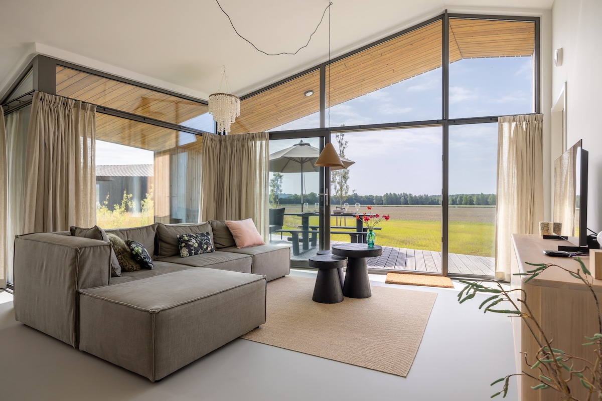 Luxe natuurhuis met wellness bij vijver