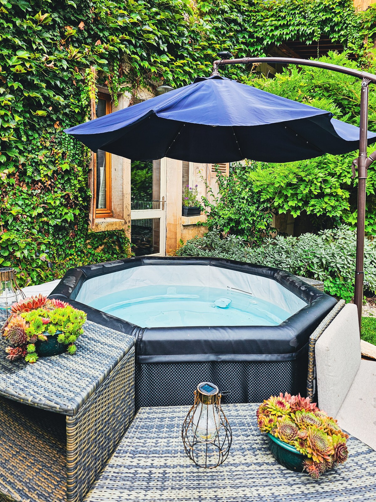 NOVO u 2025. godini ! Renoviranje kuhinje, dnevnog boravka i spavaćih soba, parkinga sa električnom stanicom za punjenje i terenom od 12m x 4m pétanque (igra s loptom). Zamislite malu kuću s plavim roletama u mirnoj uličici u srcu sela. U prizemlju, 2 velike svetle sobe i kupatilo (potpuno novo). Na spratu, 2 međusobno povezane sobe. Ovo je kuća moje bake Žermen, smeštena u bašti travnjaka i cveća.