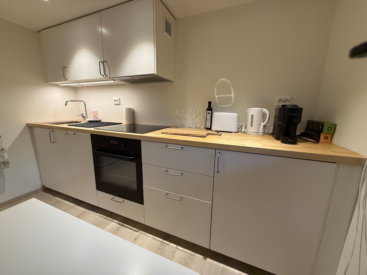 Naš stan (oko 30 m2) ima kombinovanu dobro opremljenu kuhinju i dnevni boravak sa TV-om, brzom internet konekcijom i dva kvalitetna kreveta za jednu osobu. Stan takođe ima privatni ulaz, mali hodnik i lepo kupatilo sa mašinom za pranje veša. Imajte na umu da je ovo podrumski stan s nižim plafonima. Koraci se mogu čuti odozgo tokom dana. Parking je dostupan.