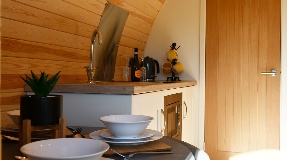 Smješten u prelijepom Južnom Šropšir Hilsu, na granici farme koja radi, Ludlow Pod je jedna od tri luksuzne kapsule (pogledajte druge na mom profilu). Uz mnoštvo slikovitih šetnji od vrata, ova udobna kapsula pruža savršen odmor za opuštanje i opuštanje. Smještaj je individualno dizajniran i namješten u prilagođenom stilu, uključujući hidromasažnu kadu, mokru sobu i objekte za kuvanje. Obezbeđeni su luksuzni 100% pamučni posteljina, peškiri i ogrtači, kao i nekoliko osnovnih potrepština.