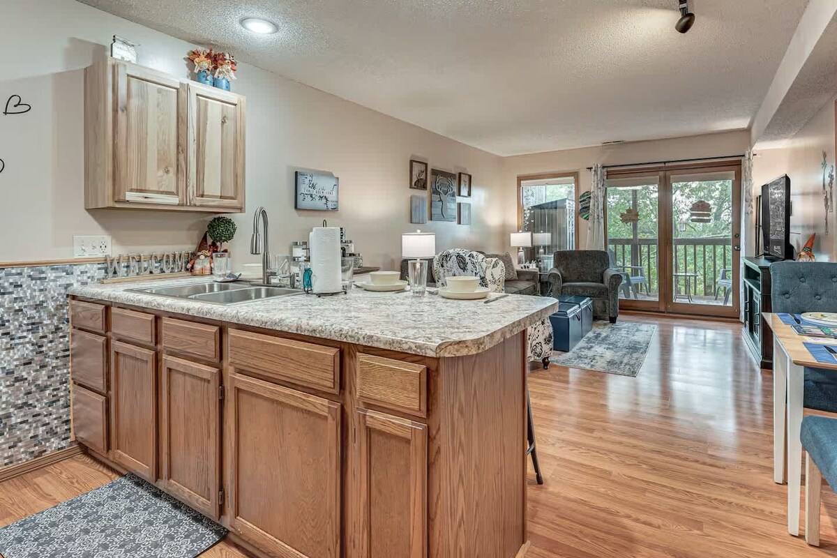 Welcome to The Pretty Peacock 🦚. This thoughtful condo is 1 mil to Silver Dollar City and 4 miles to the Branson Strip... conveniently located close to all Branson has to offer! Our cheerful 2-BR, 2-Bath condo offers a comfy living area, fully equipped kitchen, plush beds and an extra large deck. The unit is full of unique art and all the extra touches that make you feel welcome! Location and convience make this condo a great choice for families seeking an amazing Branson Adventure!