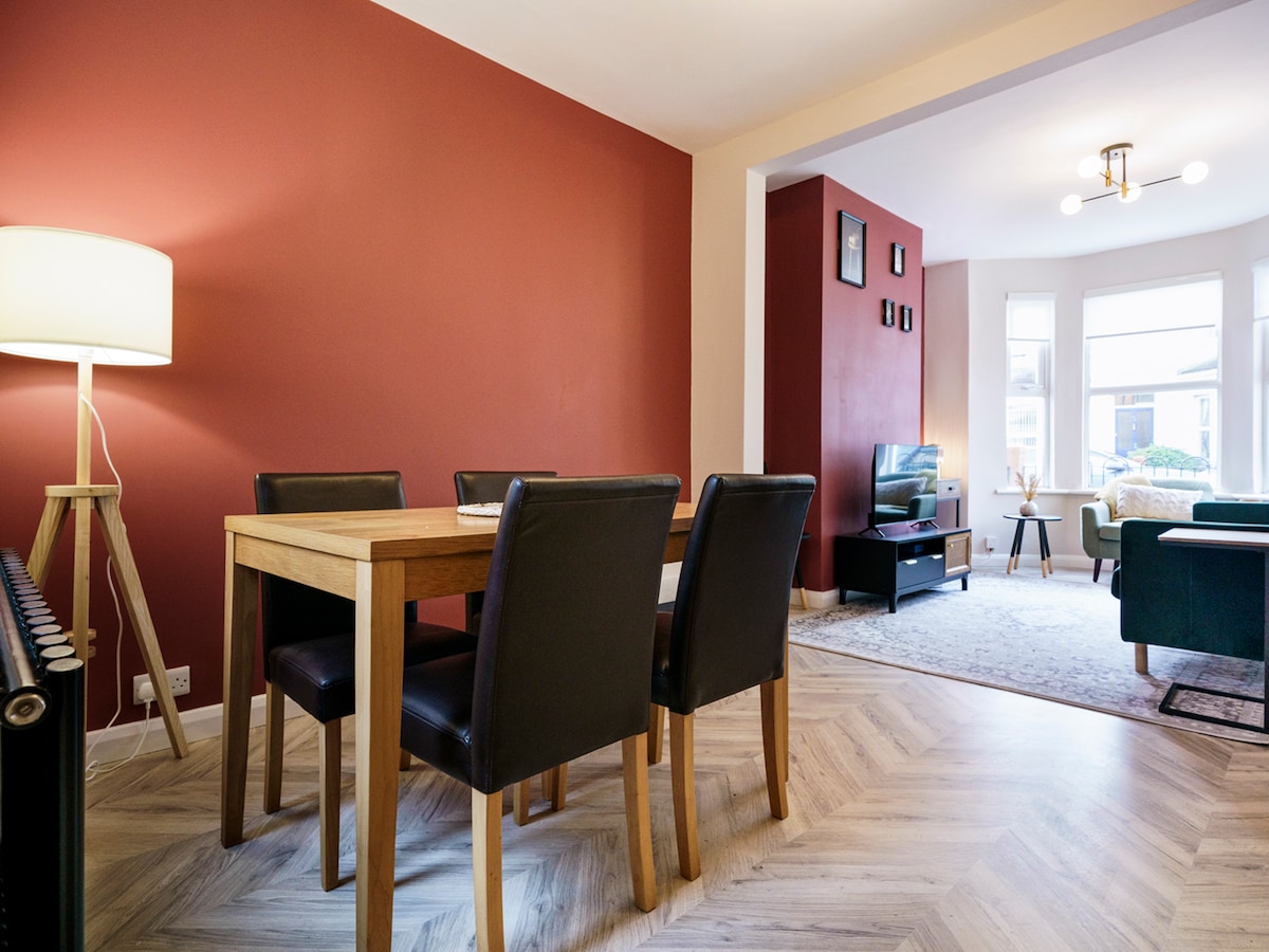 Uživajte u elegantnom doživljaju u ovoj viktorijanskoj kući u nizu koja se nalazi u centru grada. Nalazi se na periferiji centra grada, ali u blizini ima mnogo zanimljivih mjesta za branč/barova/kafića Željeznička stanica Sidenam udaljena je samo 10 minuta hoda i nudi brz prevoz do centra grada ili do obližnjih gradova Sisajda Autobuske stanice do centra grada udaljene su 2 minuta hoda, a gradski aerodrom u Belfastu udaljen je 5 minuta vožnje automobilom/20 minuta hoda