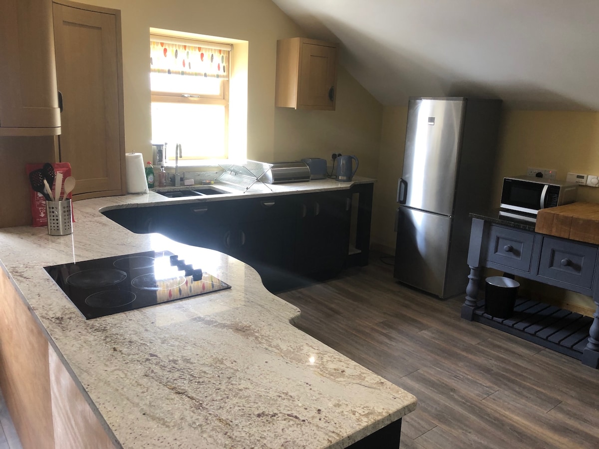 Zapanjujuće seosko utočište. 15-20 minuta od spektakularne severne obale. Potpuno novi studio apartman na spratu u privatnoj stazi sa zadivljujućim pogledom na dolinu Ben sa različitim seoskim šetnjama. Odvojeni pristup i spoljašnji prostor sa spoljnim trpezarijama i roštiljem Moderna otvorena dekoracija sa zasebnom tuš kabinom i WC školjkom. Bračni krevet (širine 180-220 cm) i kauč na razvlačenje za 3-4 gosta. čajna kuhinja sa mikrotalasnom rernom, tosterom. Prenosni šporet za kuvanje je dostupan na zahtev.