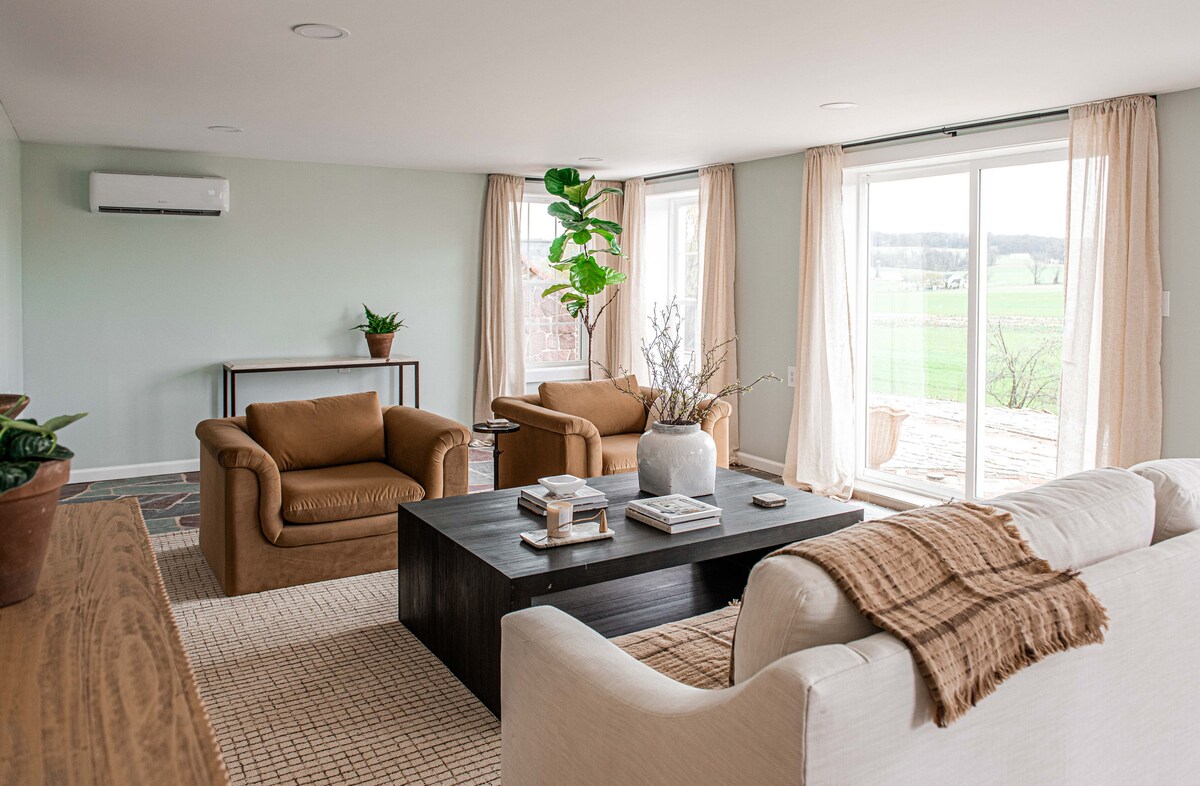 The Carriage House is the second floor of our cedar stables that was turned into an apartment years ago. It has been completely redone and professionally decorated to make it a cozy + luxe retreat with beautiful views. While we no longer use the stables to house animals we still keep a few head of cattle + sheep in the pasture for your enjoyment. The wall of windows along the back of the apartment offer you the most stunning views of the surrounding farmland and an unforgettable sunrise.