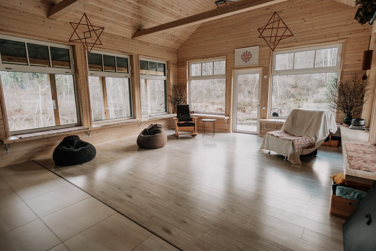 Ovo je mjesto gdje možete pronaći mir koji nudi priroda - rijeka Brasla i latvijske nacionalne divlje šume. Naš objekat je cijenjen zbog organizovanja duhovnih utočišta u malim grupama fokusiranim na samorast, pažnju i opuštanje. Imajte na umu da je ovo mirno okruženje za odmor namijenjeno mirnim aktivnostima i da nije pogodno za zabave. Objekat se nalazi 2 km od glavnog puta i do njega se dolazi dobro održavanim makadamskim putem.