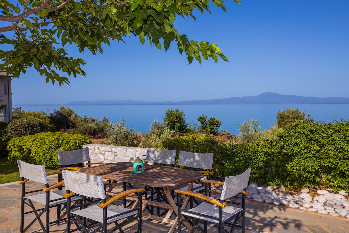 This house is a tribute to our dearest mother Ioanna who was born in this village and her wish was a house by the sea she so adored. It's our family getaway, our childhood paradise of joy,swimming and daydreaming. We are happy to host guests and families who love nature, sea and peace. Enjoy its special vibe and location, amazing sea view, peaceful surrounding with no direct neighboors. Nested in a private 2hectares olive grove, 20metres from a peaceful beach, 5' walk from the market&taverns.