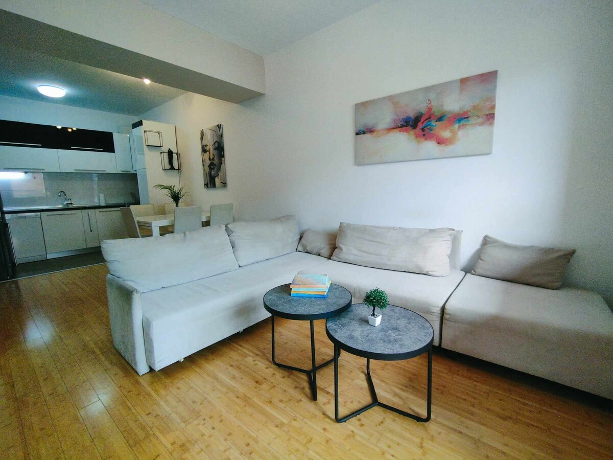 Uživajte u elegantnom iskustvu na ovom mestu koje se nalazi u centru grada Ovo je POTPUNO NOVI stan od 60 m2 5 minuta hoda od gradskog parka (stadiona) i od glavnog trga. Najbolja moguća lokacija, vrlo blizu divnih ulica Debar Maala sa mnogim barovima i restoranima. Stan ima 1 spavaću sobu sa bračnim krevetom i dnevnim boravkom sa udobnim kaučem na razvlačenje + krevetom na razvlačenje Takođe, dva balkona iz obe sobe, jedan sa pogledom na planinu Vodno. Možete ga koristiti za ispijanje kafe ili ručak