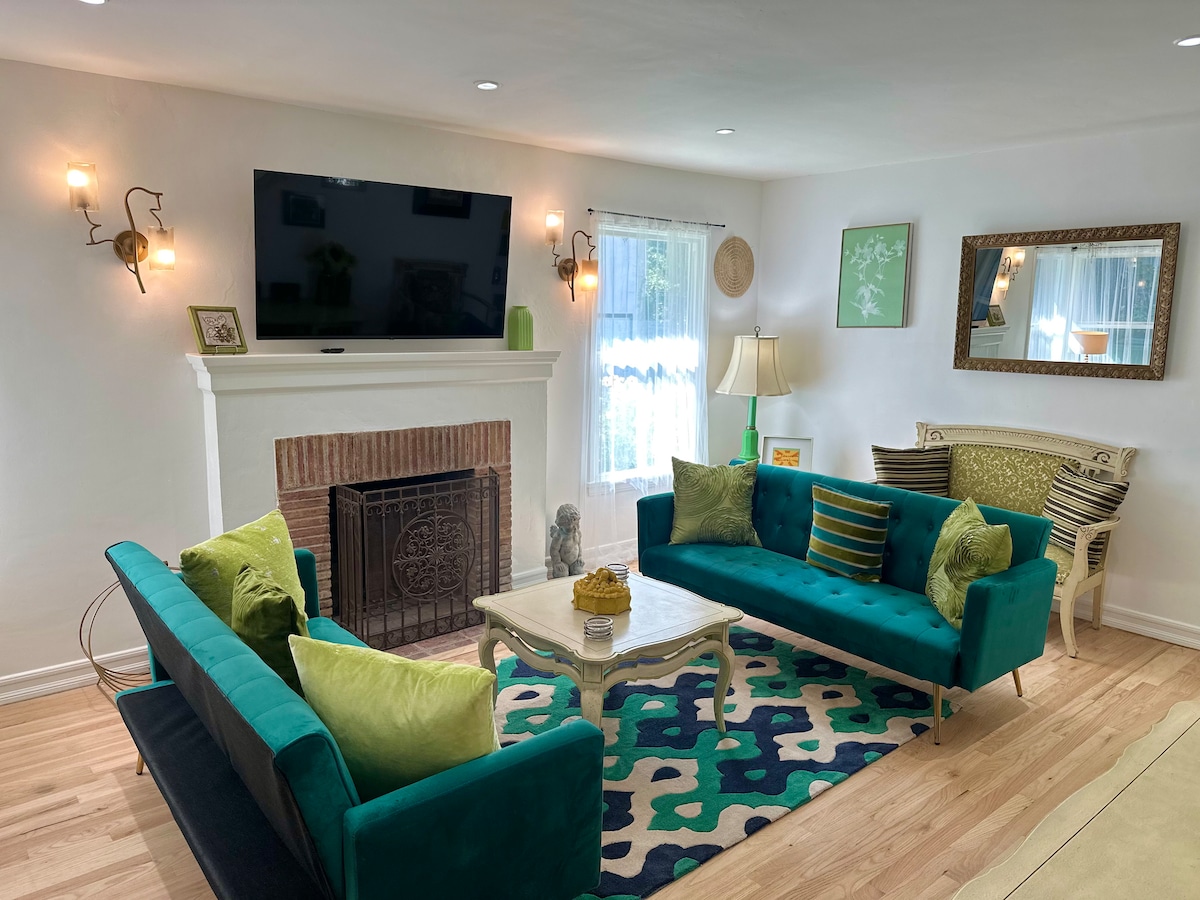 This bright, cozy Spanish Oasis is a fully furnished 2-bedroom (Queen and Full Double Bed) home ideally located in Atwater Village, adjacent to Los Feliz, Griffith Park, Hollywood, and Silverlake. Cafes, boutiques, restaurants, and a farmer's market are all within a 5-minute walk. Unwind in the backyard oasis with a koi pond, fire pit, surrounded by large mature trees providing shade, tranquility, and privacy. Ample parking. PETS STAY FREE.