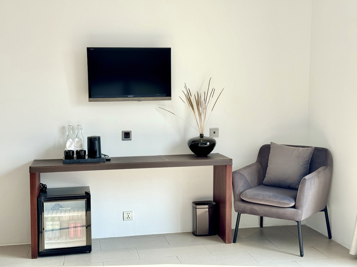 Prostrana jedna spavaća soba s udobnim bračnim krevetom, odvojenim dnevnim boravkom i kompletnom kuhinjom - savršena za opuštanje ili duže boravke. Uživajte u pogledu na grad sa svog privatnog balkona, ostanite povezani uz brzi Wi-Fi i opustite se uz pametni TV. Uključuje svakodnevno čišćenje i non-stop podršku na recepciji. Nalazi se u centru grada, u blizini prodavnica, restorana i atrakcija - vaš elegantan dom daleko od doma!