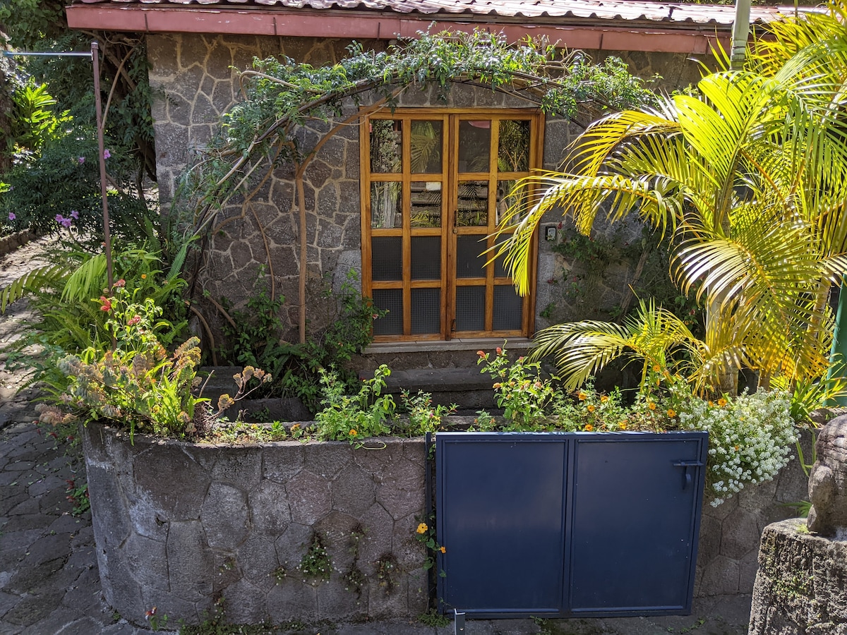 Gostinjska kuća s velikim trijemom, smještena u prelijepoj, privatnoj bašti. Objekat je okružen zidovima i ima pristup jezeru. Velika bašta se dijeli sa još 3 male kuće, kao i bazen. Kuća se sastoji od jedne velike sobe, sa bračnim krevetom, krevetom za jednu osobu, dnevnim boravkom i dimnjakom. Čajna kuhinja se nalazi u zasebnoj kući, kao i kupatilo (ne dijeli se sa drugim gostima). Objekat je udaljen 5 minuta hoda od kafića Cosmico pored puta, odakle tuctucs ide do centra Santjaga
