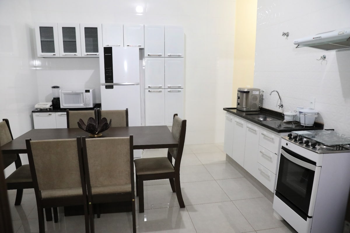 Udobna i dobro locirana kuća, u blizini ulaza u grad. 500 metara od prodavnice, Mekdonalds, supermarketa i benzinske stanice i 900m od bolnice/Unimed. pozvani u smještaj za Thermas Acqualinda i širu javnost. Klimatizovana soba, plafonski ventilator i radni sto, koji može da primi do 4 osobe. Wi-Fi, pametni TV i kuhinja opremljena frižiderom, mikrotalasnom pećnicom, šporetom, prečišćivačem vode i kuhinjskim priborom. Idealno za porodice ili one koji traže praktičnost.