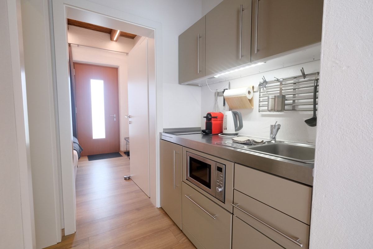 Potpuno novouređeni stan nalazi se u samom srcu Tieshena i nudi vam veliki dnevni boravak/spavaću sobu sa visokim starim drvećem sa dovoljno prostora za 4 osobe. Ima bračni krevet dimenzija 180 × 200 cm i sofu na razvlačenje za najviše 2 osobe. Lokalni supermarket Nah&Frisch, mnoge vinske farme i kafane, kao i poznata lokacija za vjenčanje „Winzerhotel und Weingut Kolleritsch”, udaljeni su nekoliko minuta hoda.