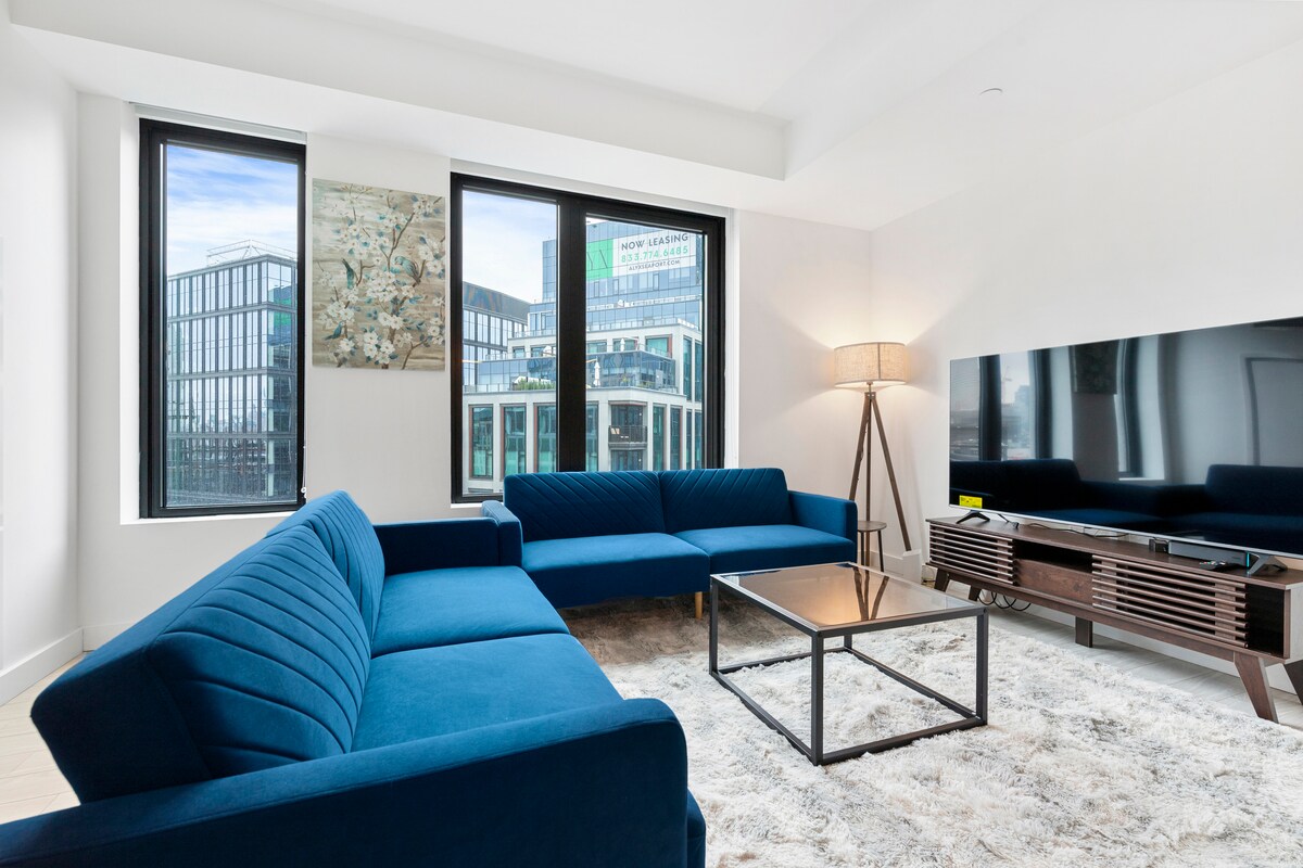 Velika plava spavaća soba pored stanice za voz i autobus u Bostonu