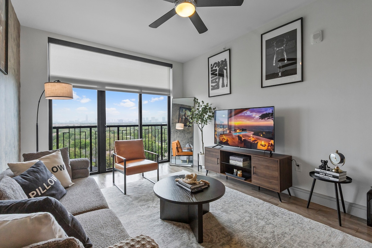 Dobro došli u svoj penthaus apartman inspirisan umjetnošću u srcu Hjustona. Ovaj luksuzni prostor odlikuje se elegantnim dekorom, uređenom umjetnošću, zadivljujućim pogledom na horizont i mirnom atmosferom savršenom za opuštanje ili rad. Uživajte u pametnim televizorima, udobnoj spavaćoj sobi, kupatilu u spa stilu i potpuno opremljenoj kuhinji. Nalazi se u luksuznoj zgradi samo nekoliko minuta od Med Centra, stadiona NRG i centra grada. Idealno za parove, porodice, putnike koji putuju sami, medicinske stručnjake ili poslovne goste.