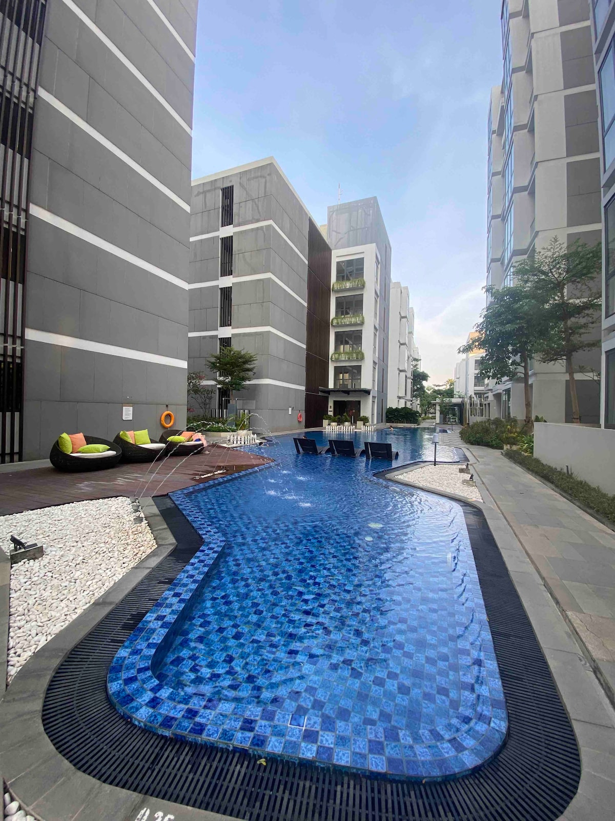 Stylish New 2+1BR Condo at Citraland Vittorio w/ free parking, pools, gym, 69 mbps fast wifi and Netflix. Central location in Surabaya Barat main road, walking distance to restaurants, cafés, shops, 10 mins drive to Pakuwon Mall or Toll Road. Largest condo in the building, ideal place for staycation, family or business trip, with amenities that cater your daily needs: kitchen for modest cooking, best-quality mattresses and blackout blinds for a good rest, spacious storage and hot-cold shower.