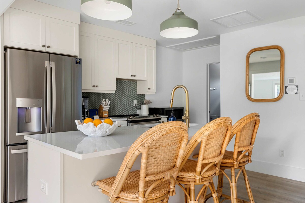 Savršen pogled na okean i pristanište vas čeka sa veoma velike terase sa roštiljem. Otvoreni tlocrt sa odličnim pogledom na okean iz glavnog dnevnog boravka i glavne spavaće sobe. Glavno kupatilo sa zasebnim tušem i jacuzzijem. Tigrovi podovi od tvrdog drveta, kvarcne radne površine i svi novi uređaji u potpuno opremljenoj kuhinji. Kratka šetnja do ulice Center za prodavnice i restorane. Nevjerovatna lokacija i savršena udobnost za opuštanje! Provozajte se plažom sa biciklom. 2 parking mesta.
