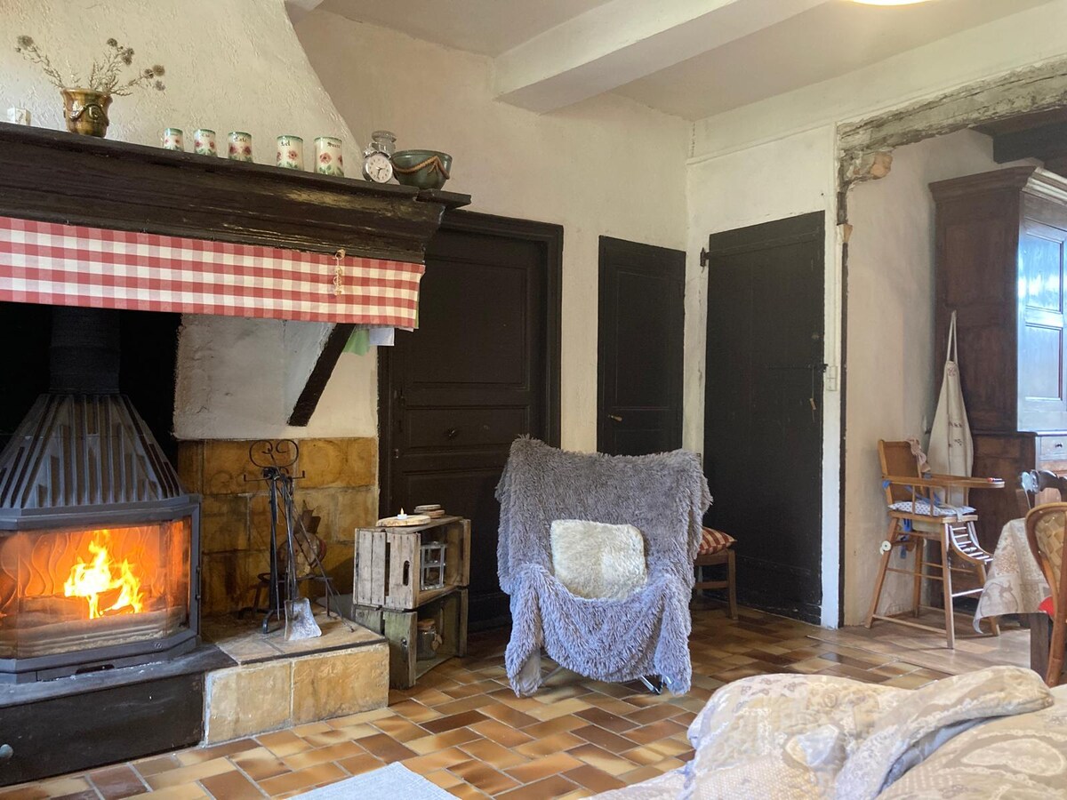 Pozivamo vas da se opustite . Savršeno isključivanje. Ljubitelji ljubavnika. Mala seoska kućica, miran , elegantan i topao smeštaj je čaura obložena drvetom. Nalazi se u srcu zaseoka Faveyrolles, čeka vas u šetnjama šumom koja nudi pejzaž koji oduzima dah ili jednostavno za odmor. Krevet će biti namešten po vašem dolasku. Na raspolaganju su vam 2 čileanske žene na maloj terasi, 2 koraka od seoske kuće; sa predivnim pogledom na planinu i krovove zaseoka.