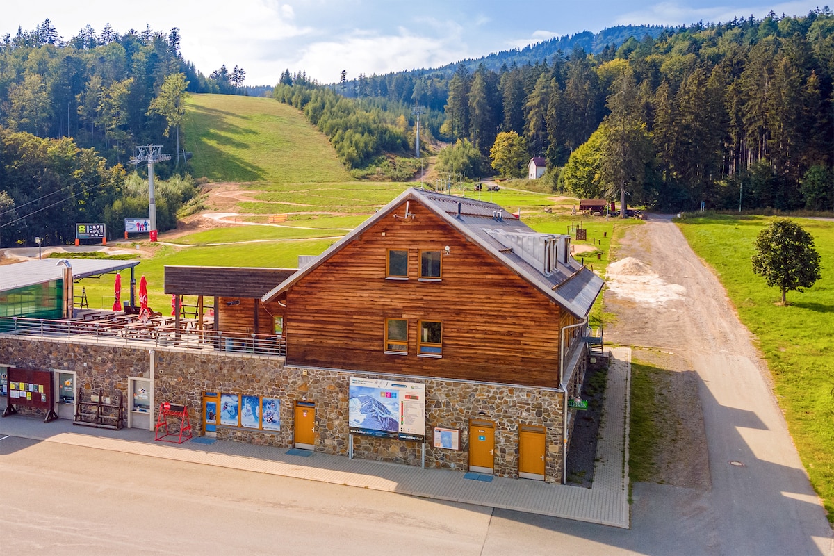 Zimska sezona je u punom jeku, a skijališta u blizini su u funkciji. svi prostori. Samo 2 km od apartmana nalaze se Termalna banja Velké Losiny i Ručno izrađena kuća od papira. Postanite naši klijenti na nekoliko dana i zaljubite se u planine u zaštićenom pejzažnom području Jeseníky kao i mi. Mi smo porodica koja vodi dva stana s ljubavlju i rado ćemo vam pokazati kako i sami zamišljamo odmor.