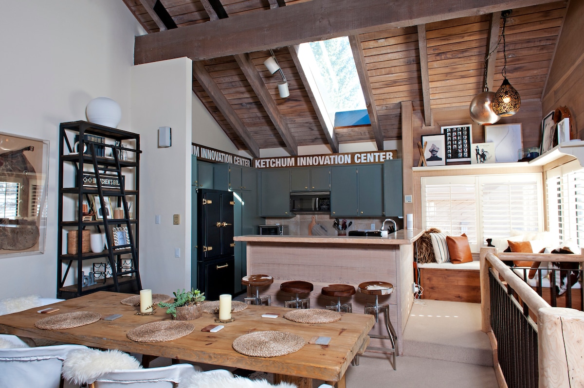 Moderan rustikalan kondominijum u srcu San Velija. - Ulaz i izlaz - Udaljenost od: prodavnica, restorana, SV lože, spa centra itd. Uživajte na otvorenom, a zatim se vratite u svoj SV kondominijum kako biste uživali u udobnom kauču, velikom televizoru i drugim tehnološkim sadržajima ili se opustite pored vatre uz piće po izboru. Ovo je jedinstveni kondominijum sa vrhunskim uređajima i dodacima koji odgovaraju vašim potrebama u zatvorenom prostoru. Volimo Sun Valley i nadamo se da ćete i vi.