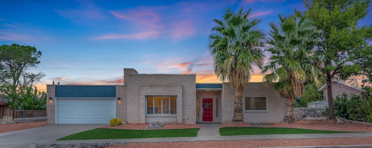 3 spavaće sobe, 2 kupatila, dnevni boravak/trpezarija, kuhinja, unutrašnje dvorište, mašina za pranje i sušenje veša, 3 pametna HD TV-a, brz Wi-Fi. Zapadni El Paso, blizu autoputa I-10, Teksaškog panameričkog univerziteta, mnogo tržnih centara, bolnica. • 1 bračni krevet (1,8x2) • 1 bračni krevet (širine 150-179 cm) • 1 bračni krevet (dodatna naknada za gosta 5-6) Kuhinja je potpuno opremljena velikim frižiderom, šporetom, mikrotalasnom pećnicom, tosterom, aparatom za kafu, mašinom za sudove, posuđem itd.