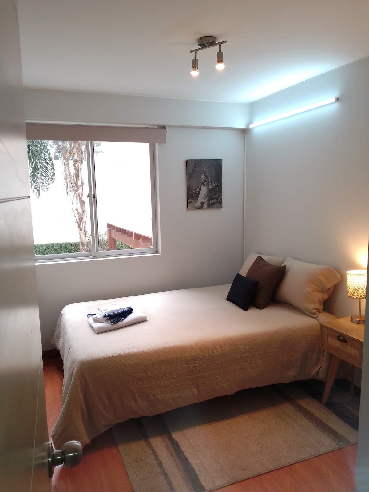 Ovaj simpatični stan ima stratešku lokaciju, na samo 5 minuta hoda do američke ambasade i tržnog centra El Polo. Jedno je od najbezbednijih i najkomercijalnijih područja u Limi. Naša soba ima udoban bračni krevet u kojem možete mirno da spavate. Imamo i privatni balkon sa stolom i stolicama odakle možete da uživate u prekrasnom pogledu na planinski lanac peruanske obale, dok pijete kafu ili uživate u omiljenoj knjizi. Dobro došli!