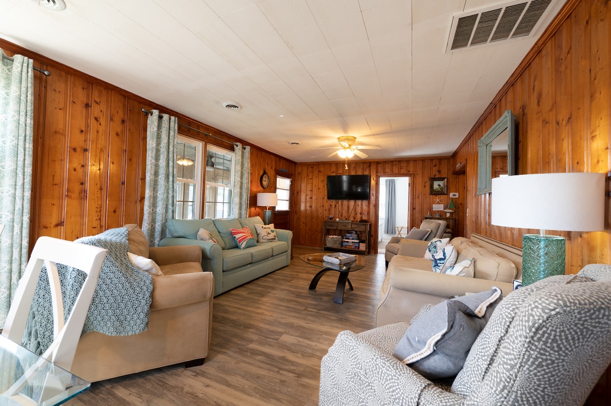 Šarmantna 2 kreveta, 1 kupatilo, kuća na plaži u 2. redu, manje od jednog minuta hoda do plaže. Uživajte u zvucima talasa koji se opuštaju na prednjem dvorištu ili u našem plinskom ognjištu. Obavezna nepovratna naknada za kućne ljubimce za naše smještaje prikladne za pse sa direktnim pristupom našem ograđenom dvorištu (naknada se zasniva na broju kućnih ljubimaca i trajanju boravka). Subota - subota iznajmljivanje tokom vrhunske sezone (Dan sjećanja Wk- Završetak do Praznika rada Wk-End). Nema mjesečnih popusta tokom ljetnih termina. Dodatna naknada za posteljinu/kupatilo (75 $) ili BYOL