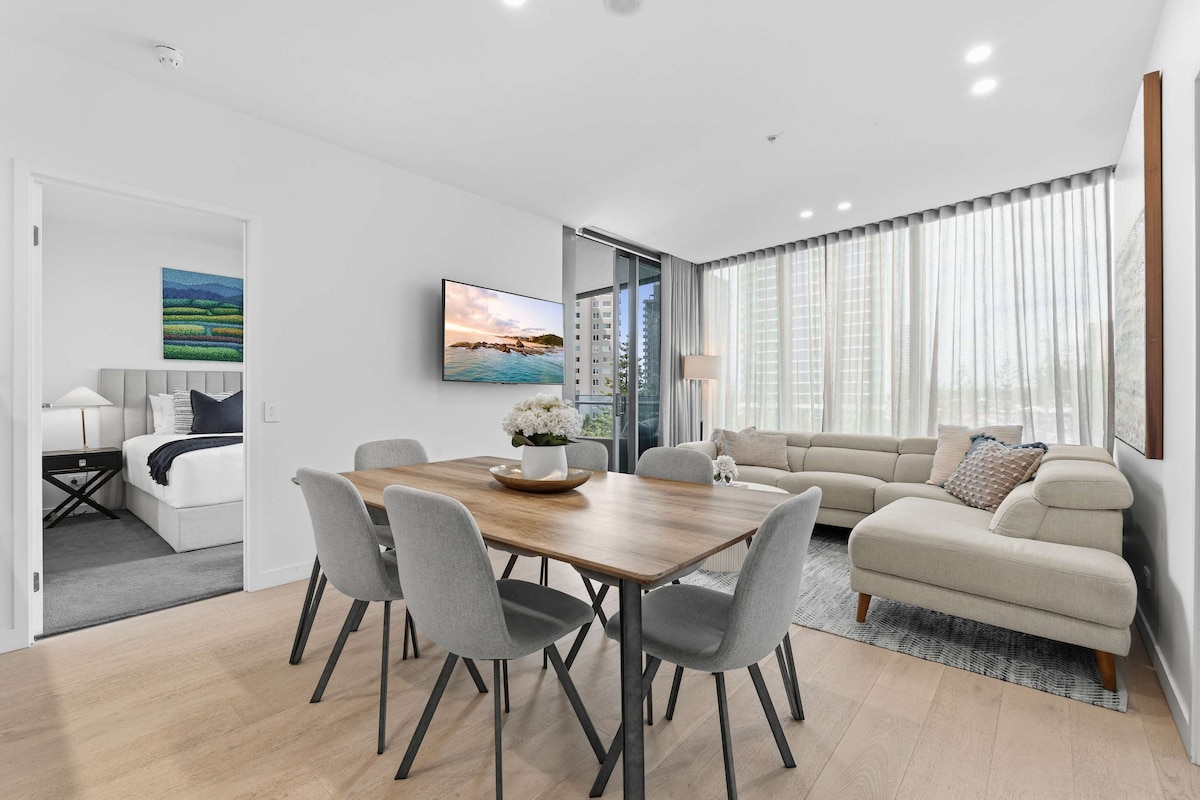 * Elegantno i šareno, moderno, PREDIVNO * Brišući pogledi u „svim” pravcima (pogledajte fotografije). Jednostavno ZADIVLJUJUĆE * Prekrasna NOVA kupatila sa okeanskim temama * BESPLATAN brzi WI-FI, Netflix i parking * Blizu plaže! * Surferski klub, odlična hrana! * Obalna staza za bicikle, 4 bicikla BESPLATNO za vas, e-bicikli za iznajmljivanje. * Jednostavan pristup tramvajima i autobusima, restoranima i kafićima, tematskim parkovima, avantura na otvorenom * Spoljni bazen i spa, teniski teren, prostor za roštilj, sveže renovirano 2025. * Interna teretana, sauna, grejani bazen i spa