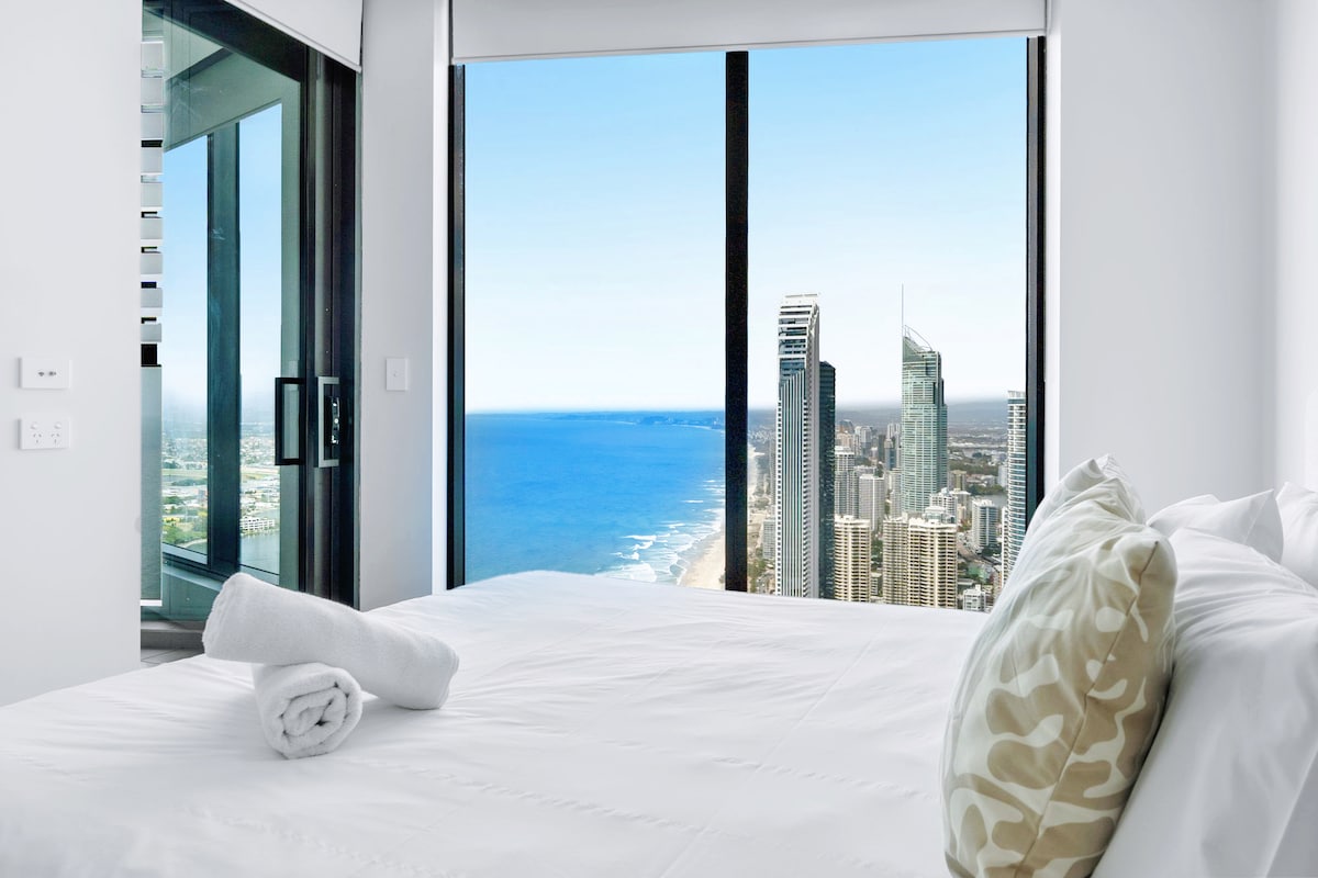 Uživajte u luksuznom boravku u našem zapanjujućem stanu Circle On Cavil. Nalazi se na 41. spratu sa neverovatnim pogledom od 180 stepeni preko okeana i zaleđa. Nalazi se u centru svih prodavnica, plaža i avenije Cavil. Opustite se i uživajte u najboljem pogledu na svoj privatni balkon. Potpuno opremljena kuhinja, luksuzno spa kupatilo, dnevna soba je opremljena King namještajem. Obe spavaće sobe su opremljene kvalitetnim dušecima na vrhu jastuka. Šetnja do plaže Nije potreban automobil - uhvatite tramvaj za Broadbeach ili autobusom do svih zabavnih parkova.