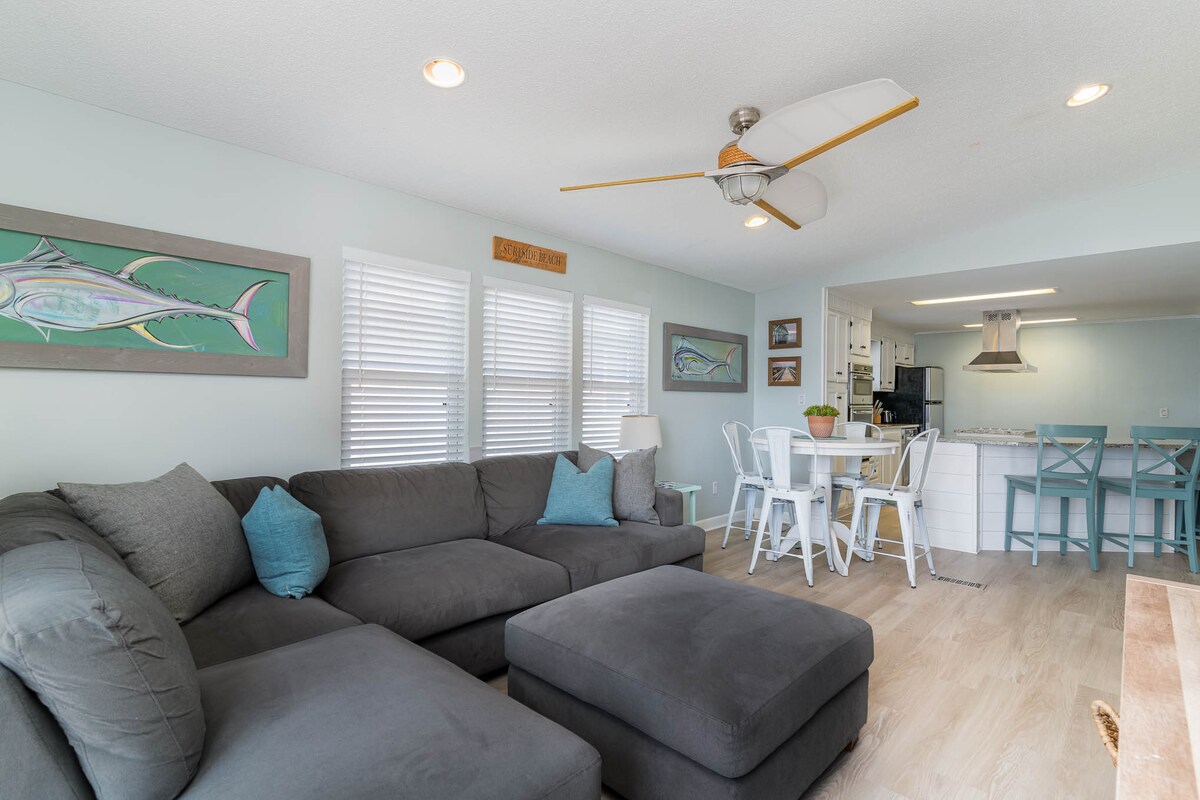 Olakšajte odmor u ovoj porodičnoj kući u nizu u Oušnsajd Vilidžu - samo 5 minuta vožnje automobilom za golf do plaže Surfsajd sa privatnim parkingom. Unutra uživajte u potpuno opremljenoj kuhinji, 2 udobne spavaće sobe i natkrivenom unutrašnjem dvorištu. Napolju istražite zabavu ograđene zajednice od 180 hektara: 2 bazena, podloga za prskanje, igralište, hidromasažna kada i još mnogo toga. Uz opremu za plažu, vozilo za golf i svu udobnost doma, to je vaša opuštena lansirna rampa za pravi odmor uz obalu.