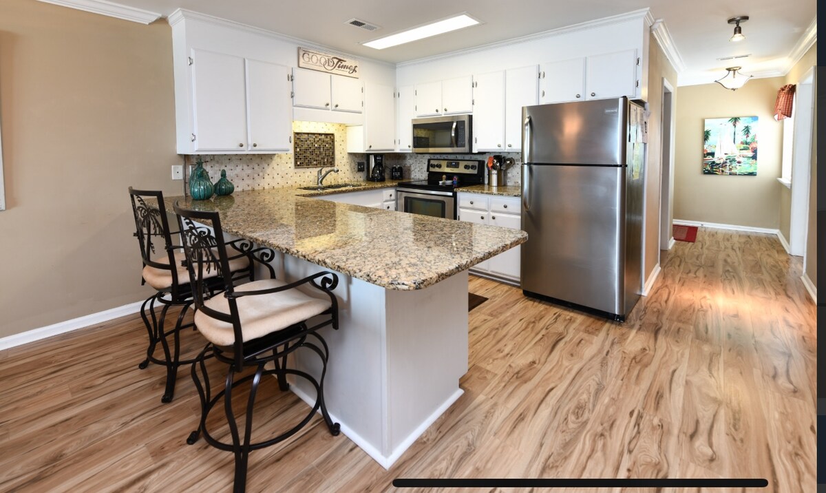 Šetalište 301 je samo nekoliko koraka od peska, nalazi se u 2. redu, ima pogled na okean i ima sve što vam je potrebno za opuštanje! Pristup plaži je prekoputa, a bazen vas čeka nakon dugog dana na pesku! Do Surfside Pier-a se stiže peške, a u blizini Mirtl Biča i Murel Inleta ima mnogo toga da se uradi za sve članove porodice! Ova jedinica ima plafon sa natkrivenim drvetom, granit, Shiplap, parking i još mnogo toga! * Posebni popusti na Snowbird. Pošaljite upit*