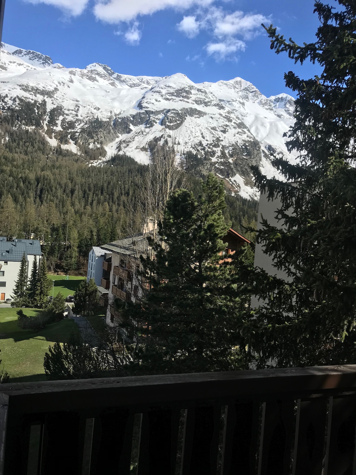 Prostran, moderan i čist 2-1/2 dvosoban stan; 65 m2; veoma mirna, centralna lokacija u kupatilu St. Moritz sa pogledom na Corvigliu. Vrlo dobro opremljeni; obezbeđeni su obezbeđeni lift, skijaške sobe i objekti za pranje veša. Postoji autobuska stanica, udaljena 5 minuta hoda do signalnog voza i kupovine. Nekoliko dobrih restorana u blizini. Zatvoreni bazen Ovaverva je iza ugla.