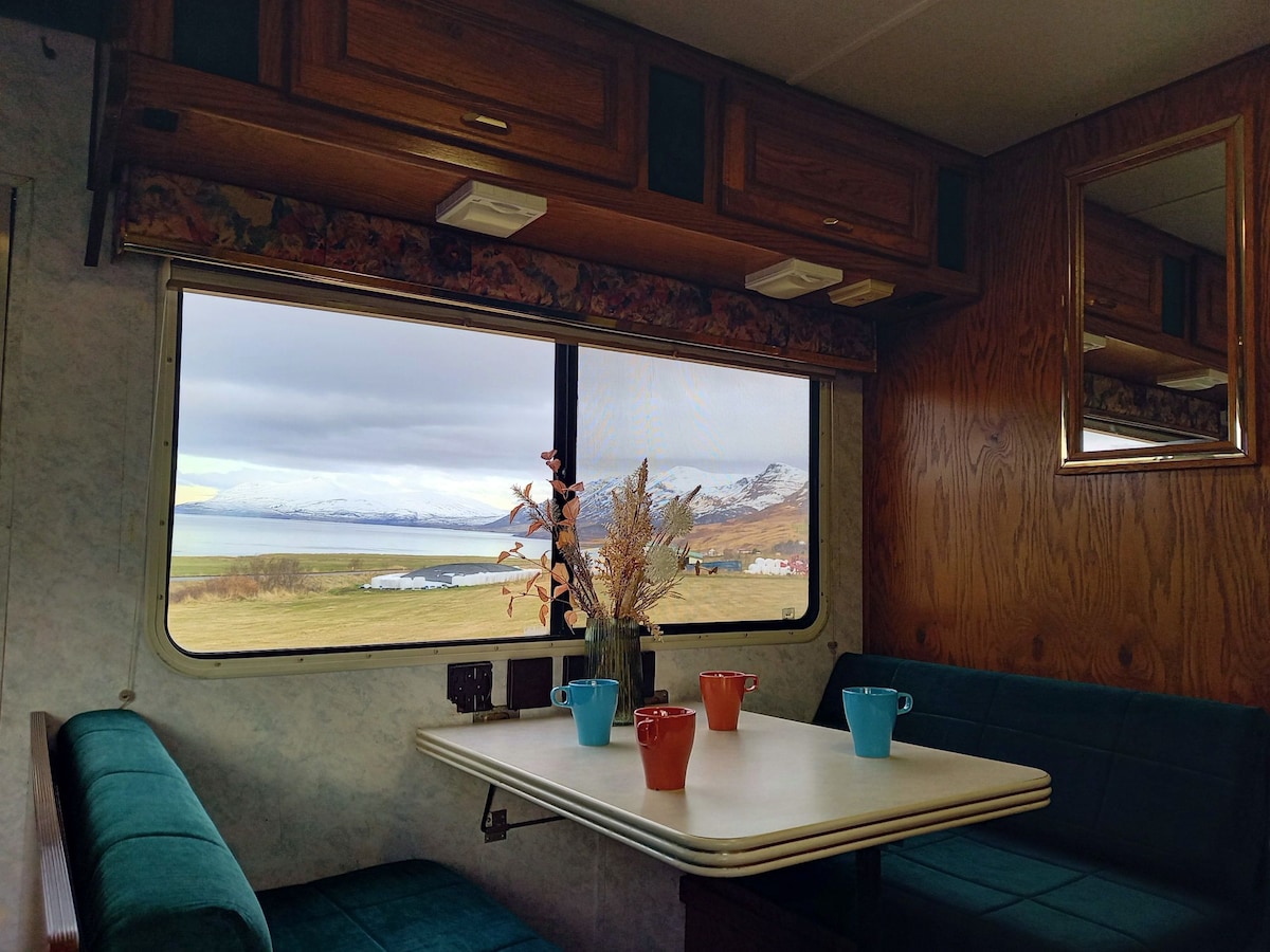 Smještena na prelijepoj farmi samo 15 minuta od Akurejrija, ova udobna kamp prikolica nudi jedinstven odmor u islandskoj prirodi. Probudite se uz pogled na okean i mirnu jednostavnost sela. To je savršeno mjesto za opuštanje i ponovno povezivanje. Prikolica je topla i dobro održavana, sa tušem, WC šoljom, grijanjem, frižiderom, aparatom za kafu i kuhinjom - svime što vam je potrebno za udoban boravak.