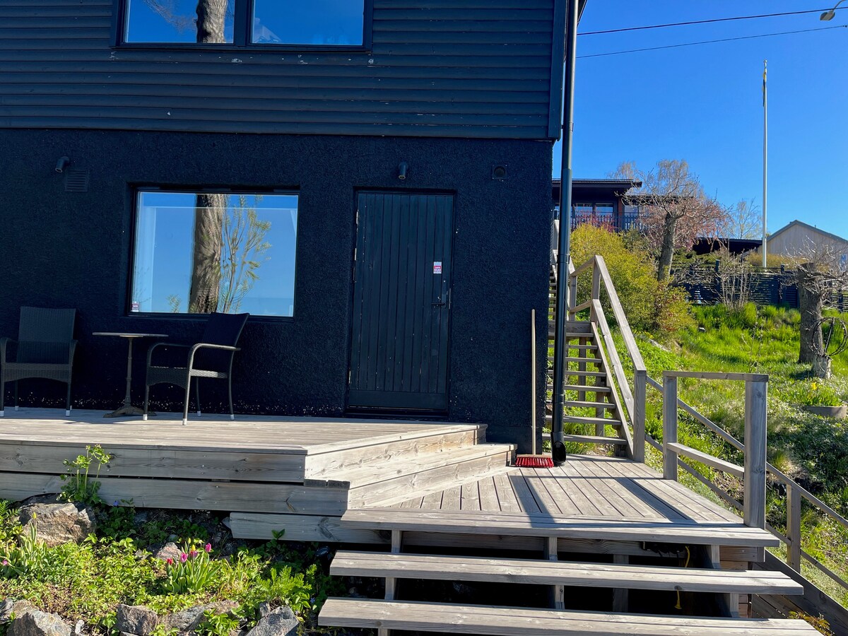 Dobro došli u našu seosku kuću za goste od 27 m2 sa kilometrima pogleda na Bråviken. 5 km do zoološkog vrta Kolmården, pješačka udaljenost do plivanja i restorana, kao i do lijepih pješačkih staza 1. bračni krevet 160 1. krevet za goste 80 Ako želite i dete između vas u krevetu, nema problema za nas Privatna terasa na jugu sa stolićem u kafiću. ICA, Coop, Apotek, Pizza 2,5 km Železnička stanica 2,5 km Šatl autobus 300m Norrköping 25 km Posteljina, peškiri i čišćenje nijesu uključeni. Možete da rezervišete uz dodatnu naknadu. Sjöbod je rezervisan za dodatni smještaj na licu mjesta