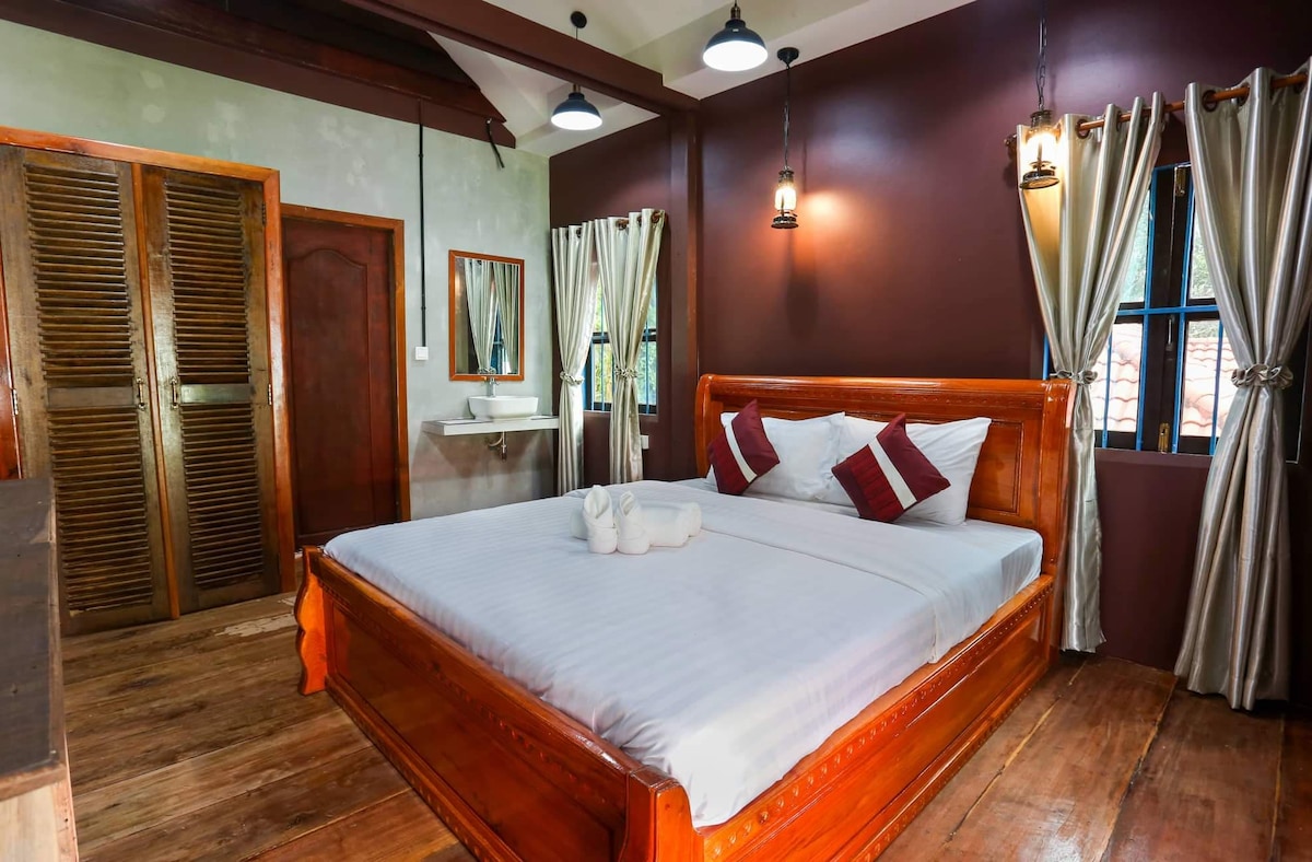 Prostrana butik kuća sa 5 spavaćih soba sa privatnim bazenom, izgrađena u jedinstvenom stilu kmerske i zapadne arhitekture sa ambijentom oaze, smještena u blizini najveće lokalne pijace Siem Reap, samo 10 minuta od centra Pab ulice i 15 minuta do veličanstvenog Angkor Vata. Ova prelijepa vila je idealna za grupu ili porodicu da uživaju u privatnom boravku i osjećaju se kao kod kuće. Tokom boravka se mogu ugovoriti autentični kmerski obroci, prevoz/vođeni obilasci i prevoz do aerodroma.
