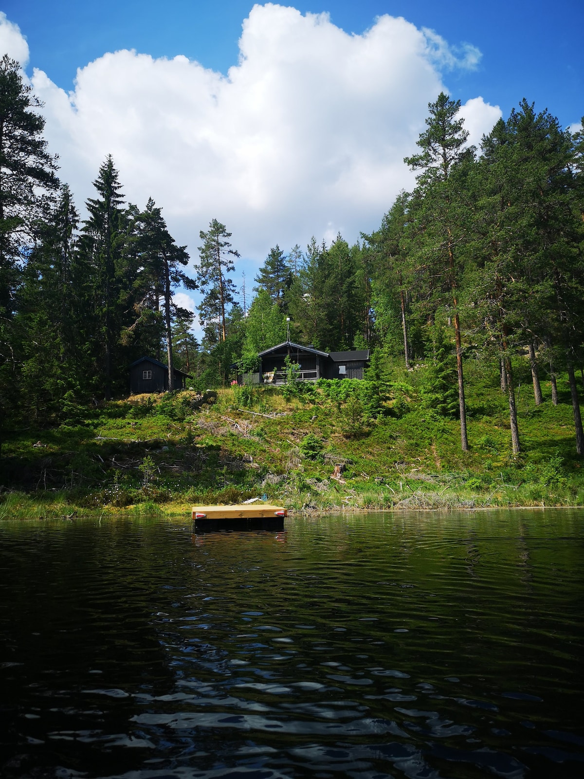 Mala i udobna brvnara koja se u potpunosti nalazi samo za sebe, daleko u šumi, pored sopstvenog jezera. Put sa naplatom putarine, ali mogućnost vožnje sve do brvnare. Domaćin mora da zaključa goste iza kapije, pogledajte i vodič za pristup. Brvnara ima jednostavnu standardnu 12-voltnu energiju iz solarne ćelije za svjetlo i punjenje. Šporet na plin i peć na drva. Tu su kuhinja, dnevni boravak i spavaća soba sa dva kreveta na sprat (kreveti za četiri osobe), spoljašnji toalet i spoljašnja kuhinja. Mogućnosti za plivanje i odlične mogućnosti za planinarenje odmah ispred vrata brvnare. Napunite baterije u ovom jedinstvenom i mirnom smještaju