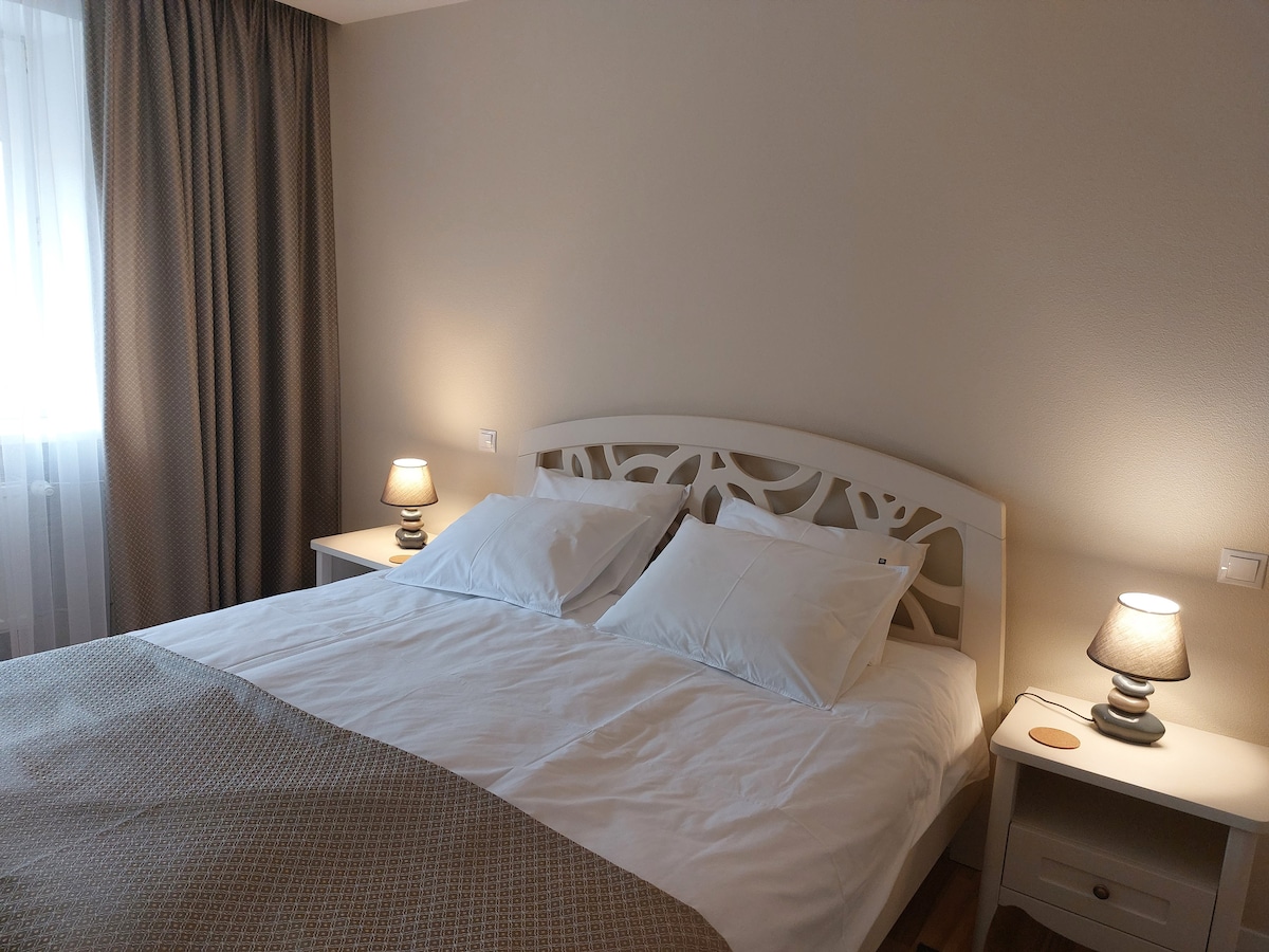 Stan u rezidenciji „Hill Garden”. Prilikom opremanja stana, jedno od glavnih razloga koje smo imali bilo je kombinovanje funkcionalnosti i stila. Smeštaj je idealan i za par i za porodicu, sa zasebnom spavaćom sobom i kaučem na razvlačenje u dnevnoj sobi za koju je potrebno samo nekoliko sekundi da se pripremi – iznenadili smo se koliko je lako preklopiti i rasklopiti se. Radujemo se što ćemo vas ugostiti u Kunigiskesu i uvereni smo da želite da se vratite!