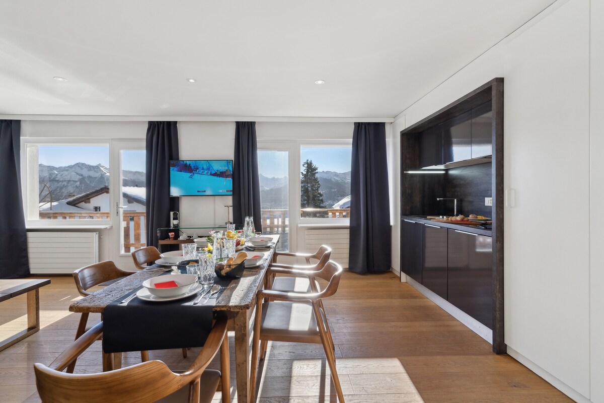Naš apartman Summit View Alpine Apartment Suite je prostran stan okrenut prema jugu i savršen za duže boravke i porodične odmore. Sa potpuno opremljenom čajnom kuhinjom, trpezarijom i udobnim dnevnim prostorom sa sofom na razvlačenje, ovaj apartman pruža svu osnovnu opremu za udoban doživljaj sličan domu. Uživajte u alpskom pogledu i privatnom balkonu, nudeći miran prostor za opuštanje nakon dana avanture.