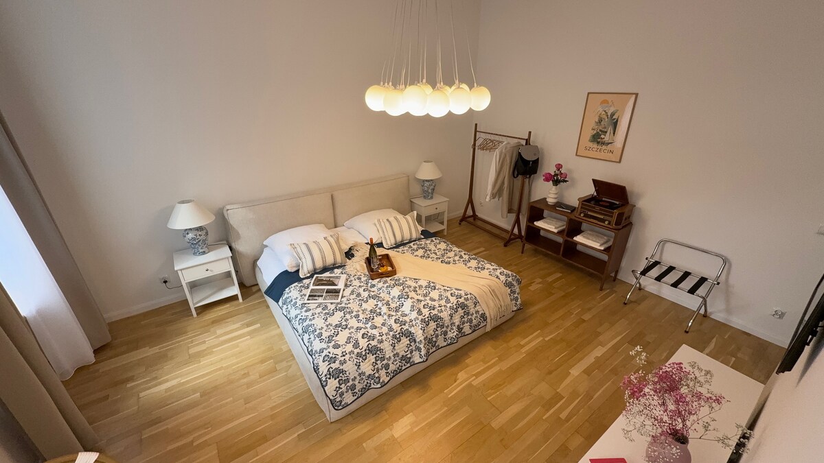 Potpuno novi (naručeni u februaru 2020. godine), prostran (42m2) i moderan stan za 4 osobe. Prethodno luksuzno urbano prebivalište Stettiner aristokratske arhitekture, kombinujući klasičnu 100-godišnju zgradu sa modernim uređenjem, uređenjem enterijera i bojama stana, odnose se na klimu prebivališta sa početka 19. i 20. veka.