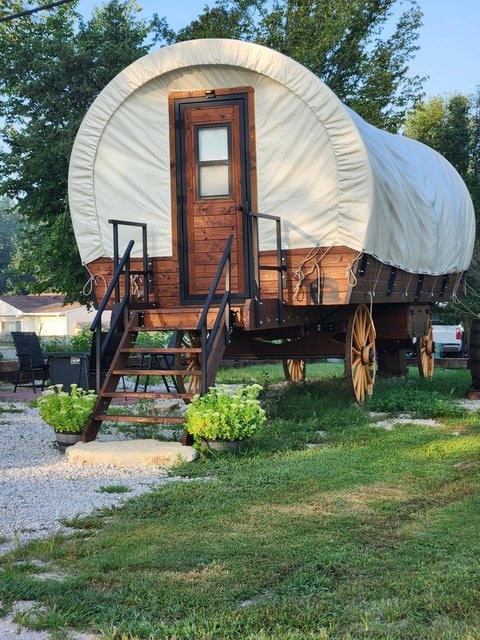 Ovaj nezaboravan smještaj je sve samo ne običan. The Calamity Jane is a unique experience, that is approximately 250 sq. ft. Udobno će spavati do 4 osobe (2 odrasle osobe i 2 djece). Iskusite nešto od onoga što su prvi doseljenici u tom području možda doživjeli, a da pritom ne morate da se odreknete svih naših modernih sadržaja. Spavajte u udobnom bračnom krevetu, a djeca spavaju na krevetu na sprat.