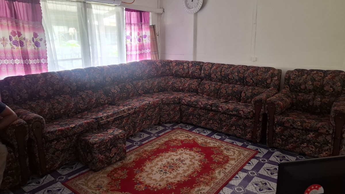 Opustite se sa cijelom porodicom u ovoj mirnoj kući s 3 spavaće sobe koja uključuje glavnu spavaću sobu. Oko 5 minuta do glavnog puta (autoput Princeza) i 25 minuta vožnje do glavnog grada Suve. 5 minuta vožnje do medicinske klinike i 15 minuta vožnje od aerodroma Nausori. Nema problema sa vodom jer je rezervni rezervoar dostupan. Sistem tople vode je instaliran u kupatilima. Kompletan sistem klimatizacije u sve 3 spavaće sobe. Velika veranda s otvorenom terasom s pogledom na raskošnu zelenu vegetaciju. Uživajte u boravku.