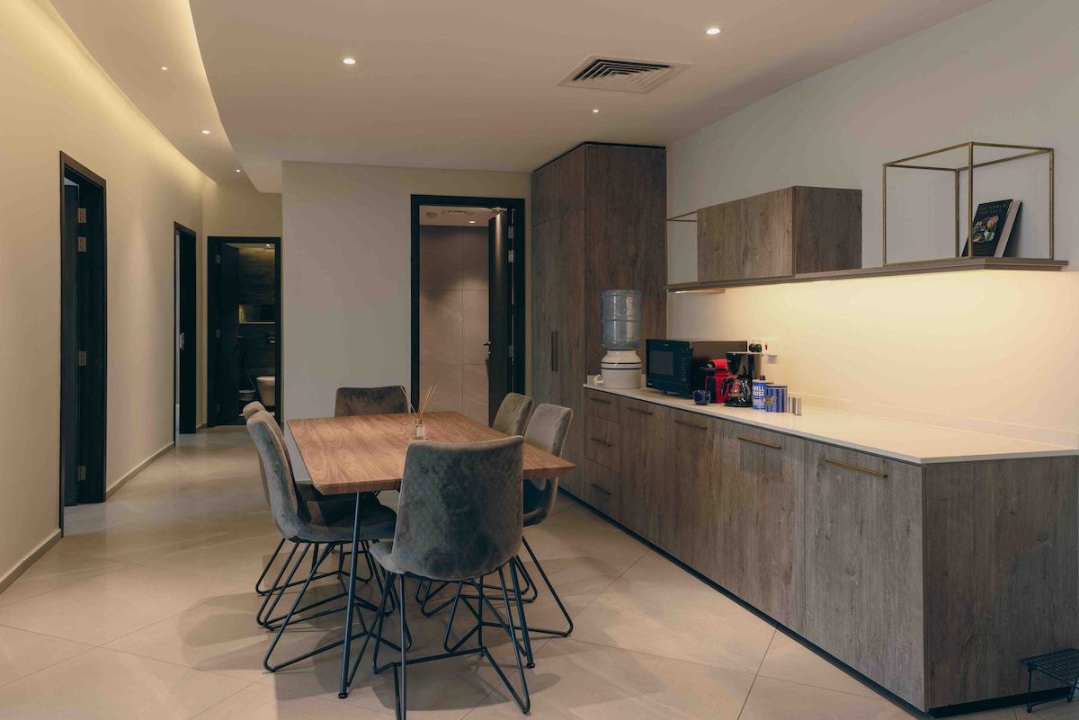 Samo za porodice - Doživite prefinjeni luksuz u ovoj ekskluzivnoj vili uz obalu u Dijaru. Sa 3 elegantne spavaće sobe, privatnim bazenom i balkonom sa mirnim pogledom na vodu, savršeno je utočište za porodice ili grupe od 6 osoba. Uživajte u modernoj udobnosti uz TV od70inča, elegantnim enterijerom i besprekornim dizajnom inspirisanim plažom. Idealno smješten na samo 10 minuta od plaže Marassi, tržnog centra Marassi Galleria i aerodroma, gdje se sofisticiranost susreće sa spokojem uz more.