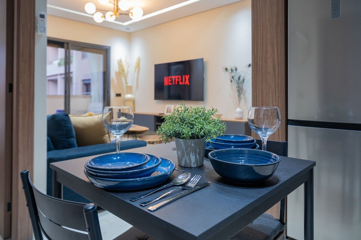 Welcome to an exquisite urban sanctuary in the vibrant Gueliz district of Marrakech, where contemporary comfort blends seamlessly with refined Moroccan elegance. Thoughtfully designed and beautifully appointed, this apartment places discerning travelers moments from the city’s finest cafés, gourmet restaurants, designer boutiques, and lively nightlife — all just a short stroll away.