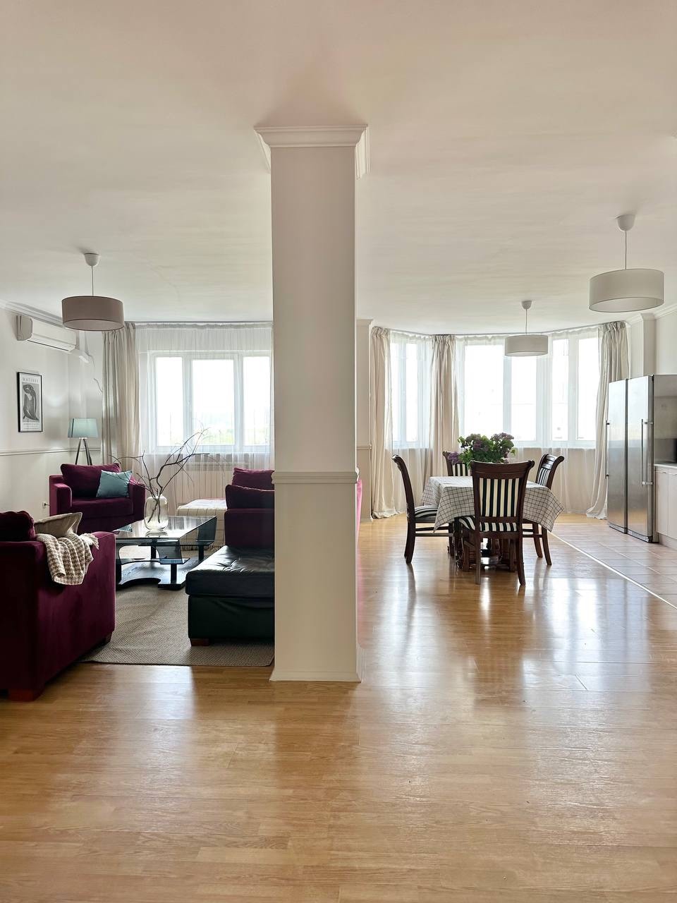 Zamislite da zakoračite u stan na Airbnb-u koji se nalazi u staroj zgradi iz doba Staljina, gde je neoklasični stil elegantno prigrljen. Spoljašnjost zgrade se može pohvaliti raskošom sovjetskog doba, sa impozantnom arhitekturom koju karakteriše čvrsta konstrukcija i simetrične linije. Kada uđete u stan, dočekuje vas žuti ulaz sa neoklasičnim lajsnama koje vode u kuhinju i dnevni boravak sa zapanjujućim lusterima koji vise sa visokih plafona. nema lifta 🛗