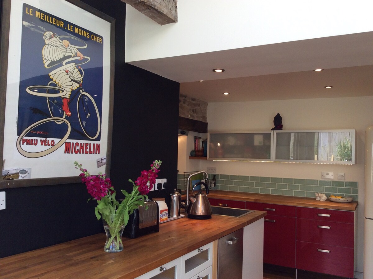 Taj Hobi Bah nudi izuzetno prostran, luksuzni smeštaj za dvoje, potpuno samostalan prostor koji čini jednu polovinu naše porodične staje. Smešten u podnožju Črnih planina, ovaj nedavno renovirani objekat iz 18. veka pruža vrhunsku osnovu za boravak u ovom zadivljujućem regionu. Napunite baterije u ovom fantastičnom, mirnom smeštaju za kratak odmor; modernom prostoru sa izloženim hrastom, staklom i kamenom. Nudi privatno parkiralište, veliku baštu sa sedištem, potpuno opremljenu kuhinju, besplatan WI-FI i kompletnu posteljinu.