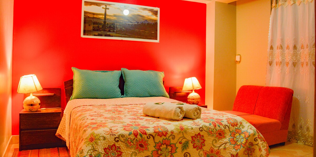 Otkrijte udobno utočište smješteno u srcu prirodnog zagrljaja u Cusco 's očaravajućem Urubambi. Naš šarmantni dom nudi mirno utočište, okruženo planinama koje izazivaju strahopoštovanje i bujnim drvećem, sa veličanstvenim vrhom Chicon prekrivenim snegom kao zapanjujućom pozadinom. Bez obzira na to da li tražite miran odmor ili avanturističko istraživanje, naš dom u Kusku obećava nezaboravno iskustvo koje će podmladiti vašu dušu i stvoriti uspomene koje će pamtiti cijeli život.